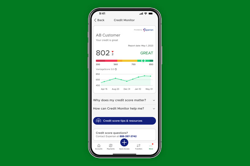 If you have any questions about your credit score or are interested in taking advantage of some of our credit monitoring services, please reach out to us online or visit us at one of our local branches.
